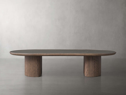 Saint Germain Stone Top Coffee Table with Wood Clement Base
