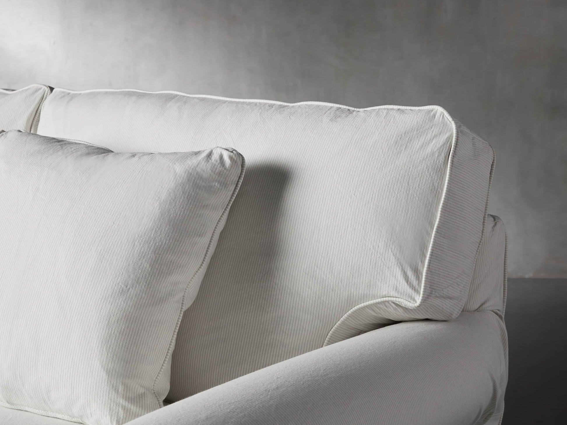 • Cushions are wrapped in cotton, down-proof casings to maintain their shape. Channel-stitching keeps padding in place for added resilience.