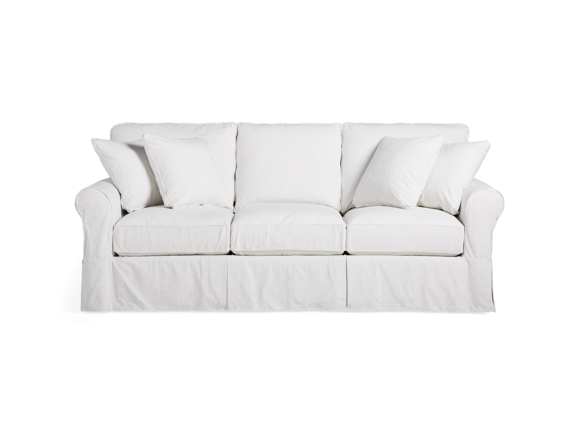 Available in a wide variety of sizes, shapes, and colors, our Baldwin Slipcovered Collection was designed with classically styled seating arrangements to frame an inviting living space. Every piece was craftsman-built by dedicated artisans in North Carolina, using durable, kiln-dried hardwood, which is padded with expertly fitted upholstery. Timeless silhouettes feature traditional, rolled arms and a skirted base. Tailored, machine-washable slipcovers—available in a large selection of colors and fabrics—are sewn by skilled seamstresses to ensure a perfect fit.