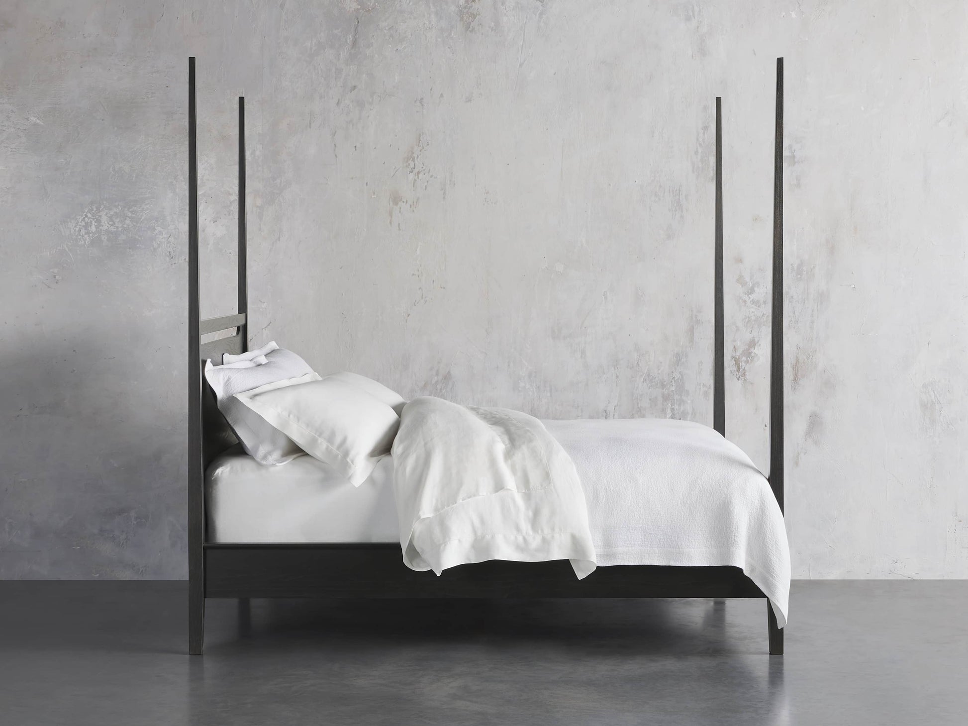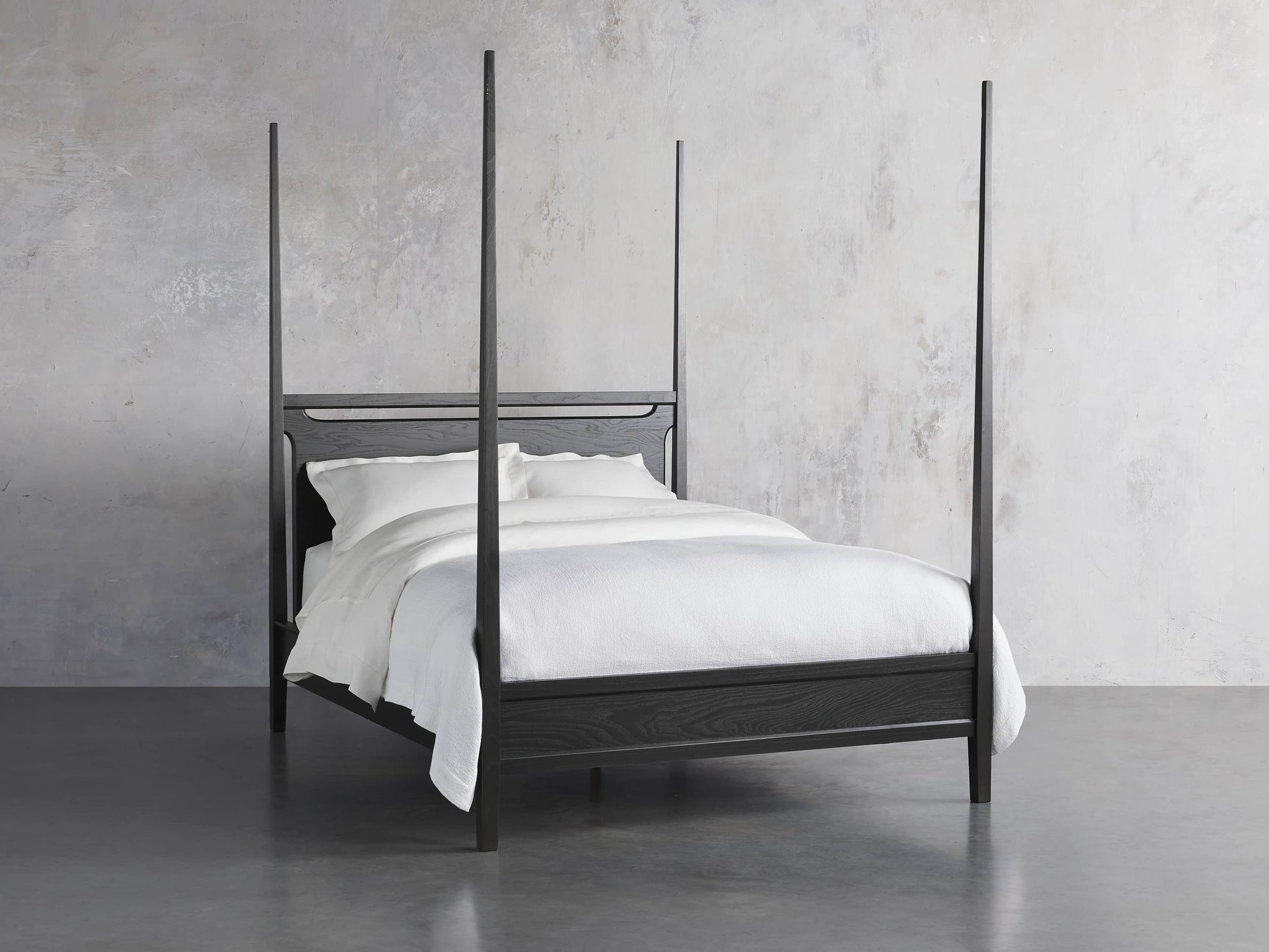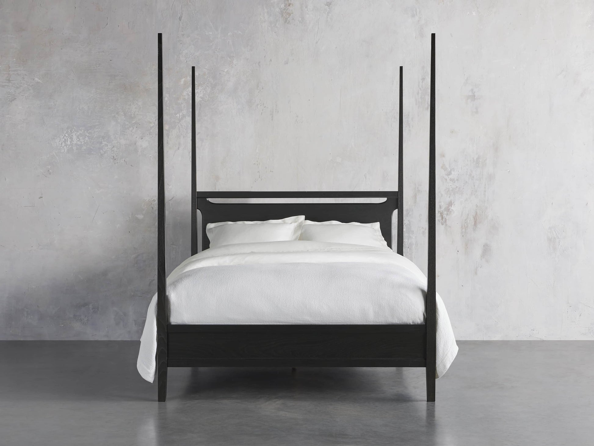 A modern classic, our Brock Bedroom Collection’s understated aesthetic features sleek silhouettes defined by clean lines and deep, hand-stained finishes. Elegant tapered posts and bold headboard cutouts elevate our Brock Poster Bed’s midcentury style.