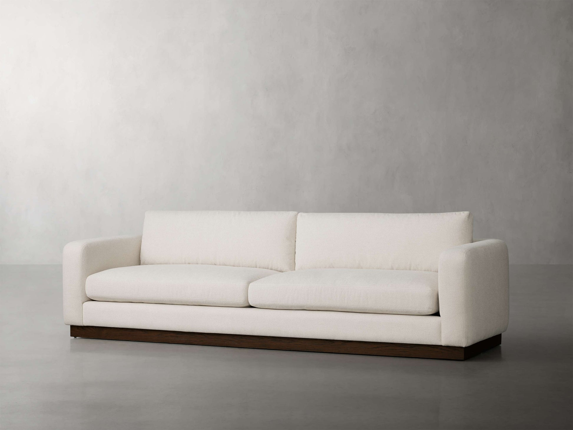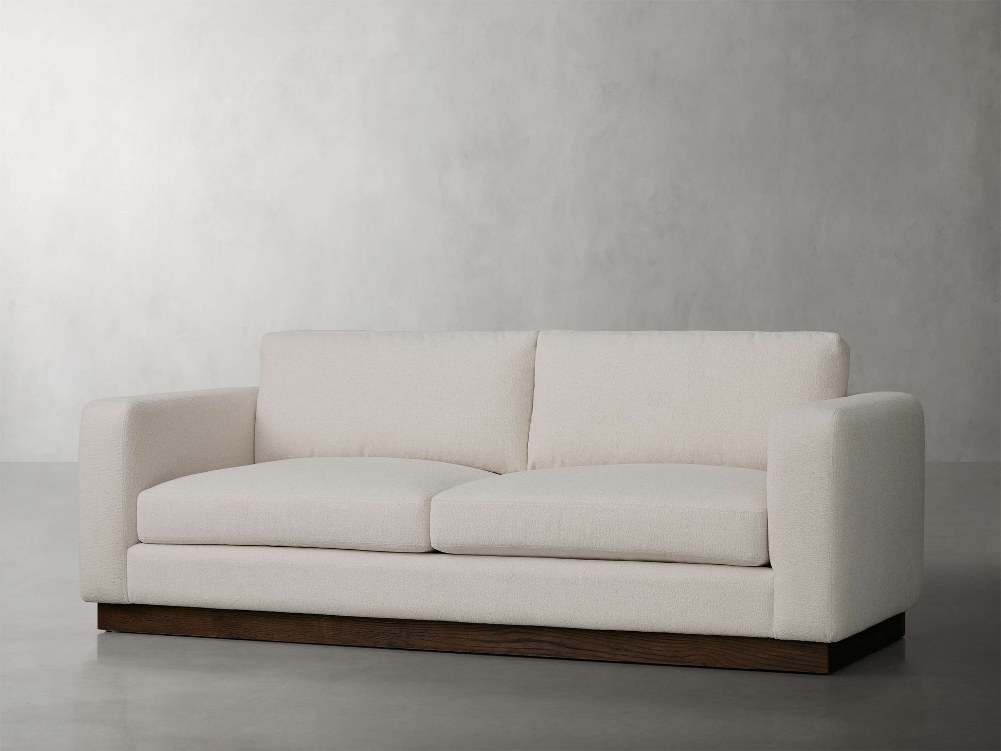 Where timeless style meets total comfort, our Camilla Collection is effortlessly beautiful. A subtly curved back paired with a richly toned oak wood plinth base, Camila is worthy of floating in the middle of any living space.