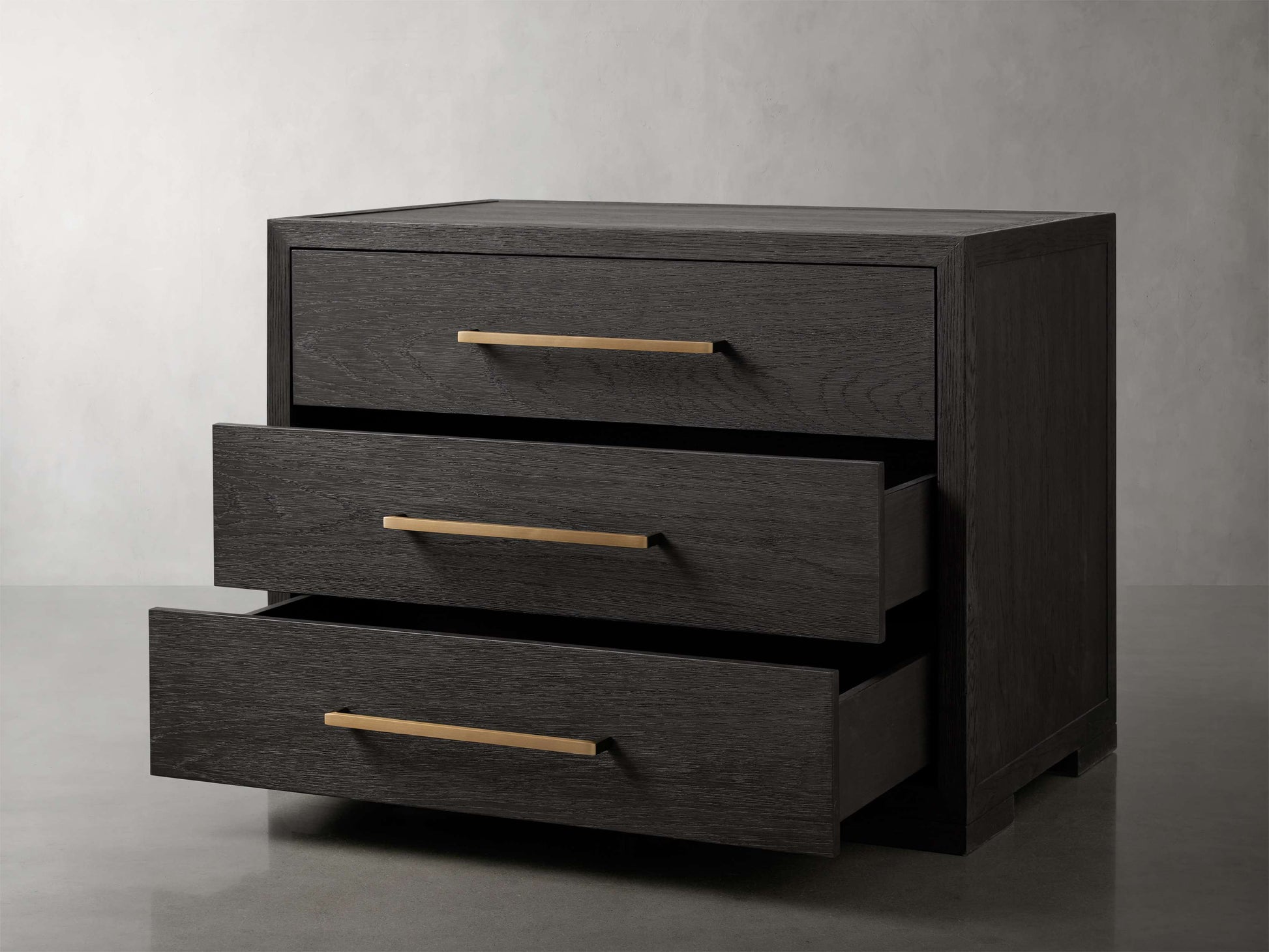Celebrating expert craftsmanship, our Darwyn Collection is designed for creating the suite of your dreams. Crafted from solid oak wood and oak veneers with a hand-applied finish, Darwyn’s subtle grooved border and brass handles will add contemporary sophistication to your bedroom.