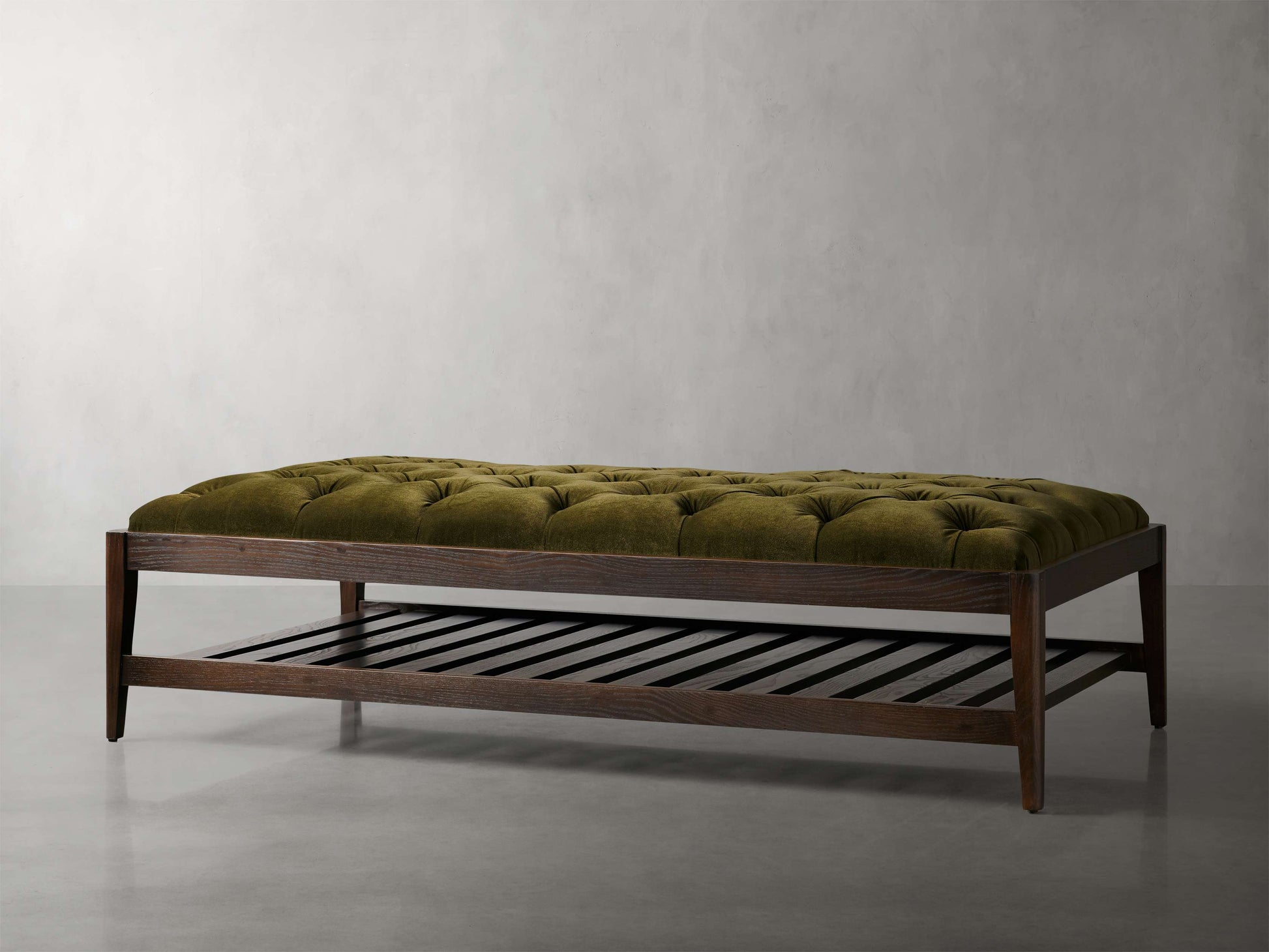 Craftsman-built, our Kent Collection adds style and function to any living arrangement. Cleverly crafted with lower shelving and optional matching trays for storage, Kent’s versatile design also offers extra seating or a place to set your drink down. Grounded on legs made from solid ash wood, Kent’s tufted, expertly tailored upholstery invites you to sit back and kick your feet up.