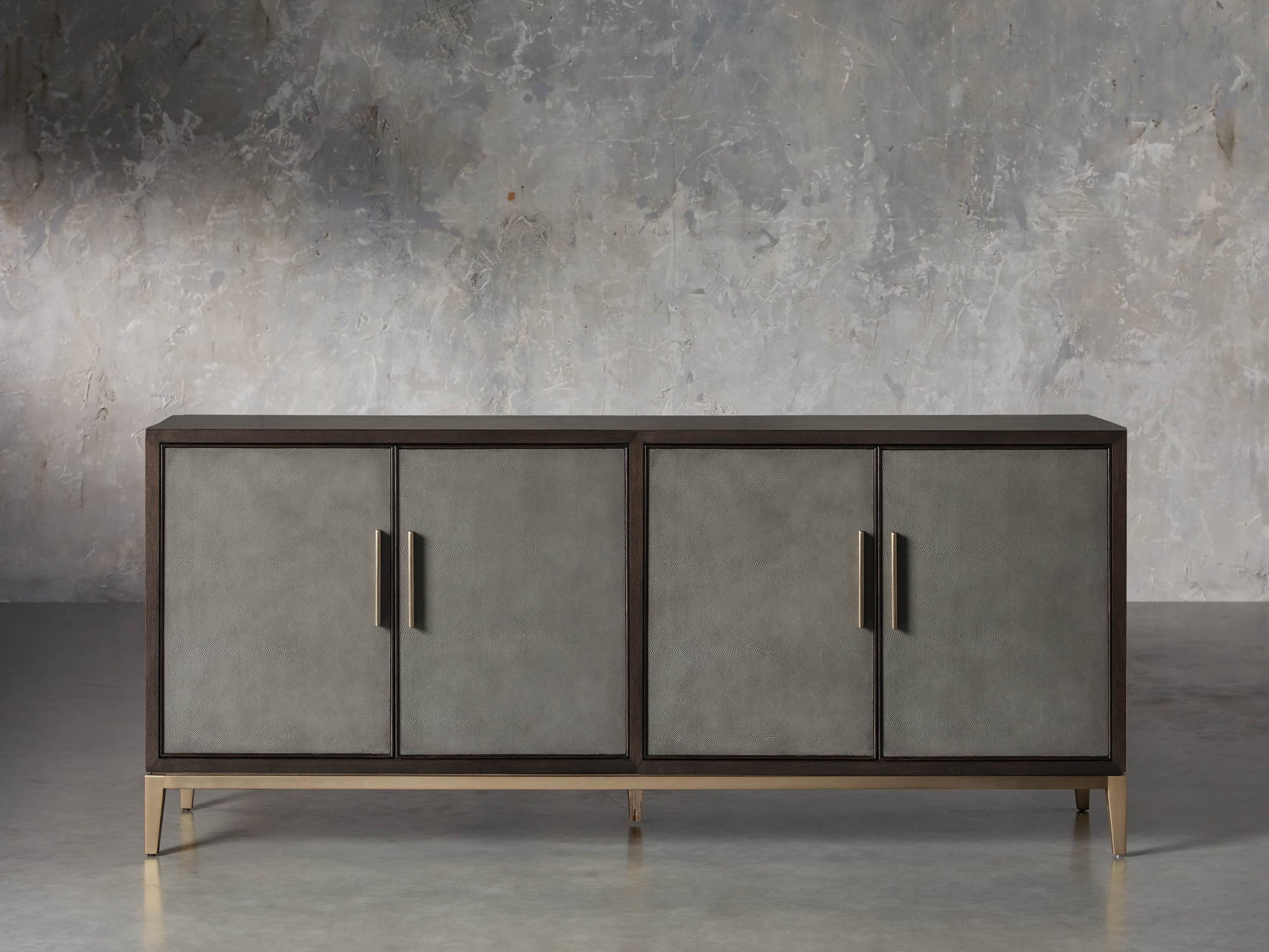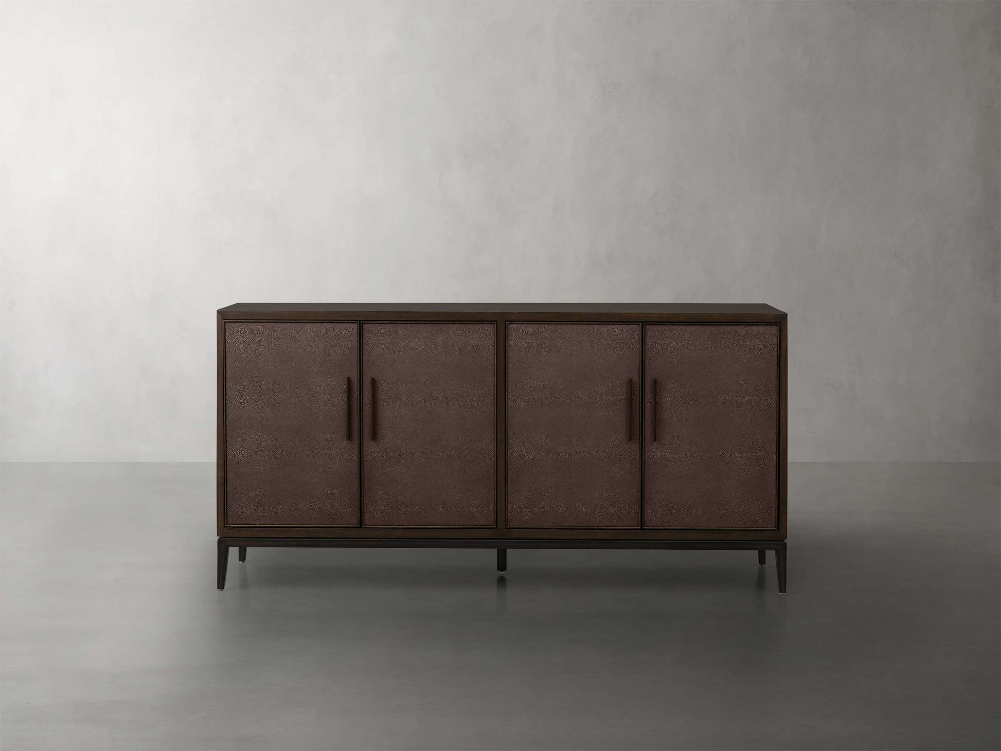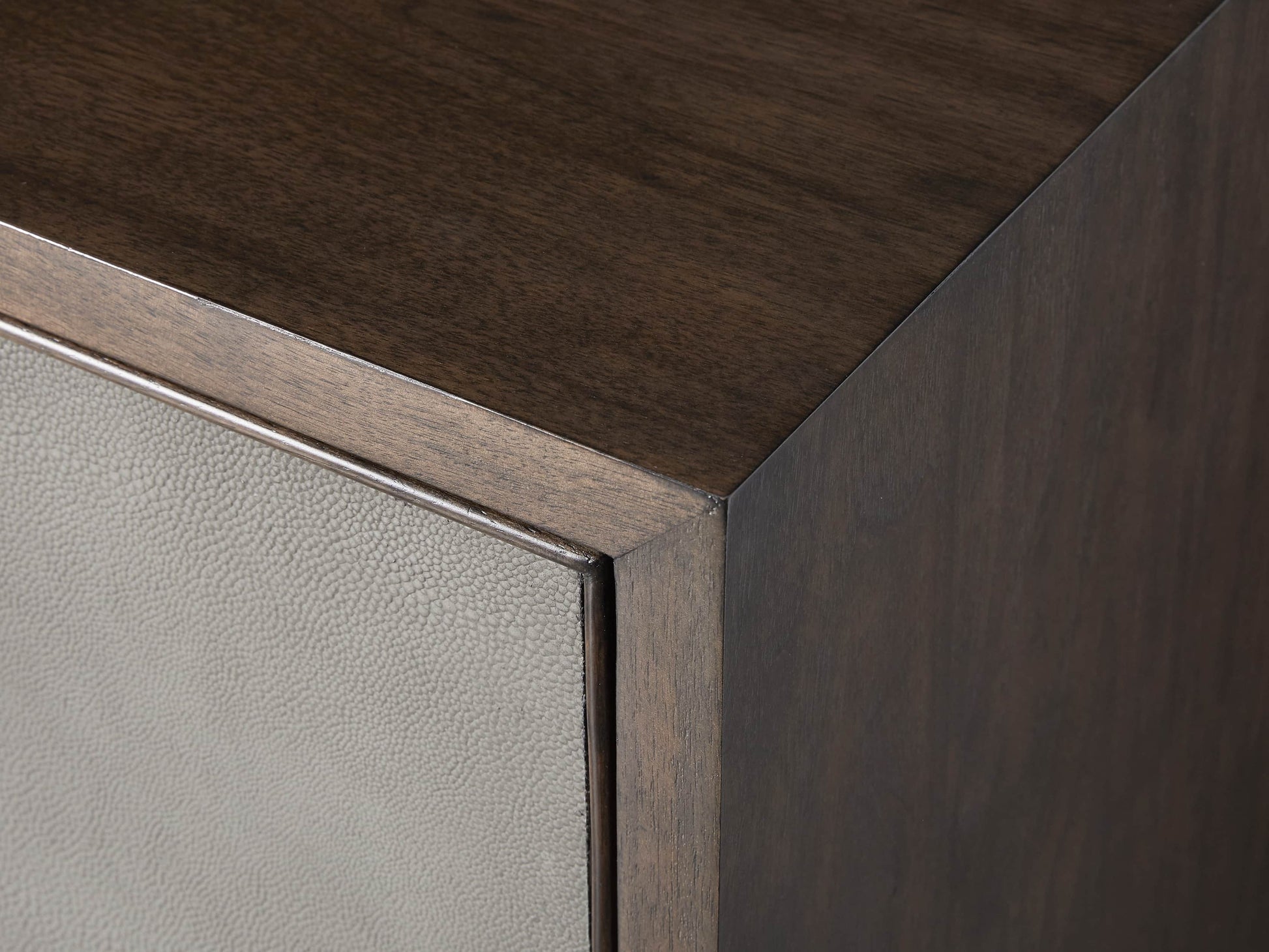 Featuring a sleek aesthetic, our Malone Collection is artisan-crafted from solid parawood or oak wood—depending on your preferred finish—and surfaced with walnut or elm wood veneers. Insets made from reconstituted leather embossed with a shagreen pattern are complemented by hand-applied finishes to give this collection a modern look with intriguing textural details. Elegant silhouettes and metallic accents will elevate your space to a new level of refinement.