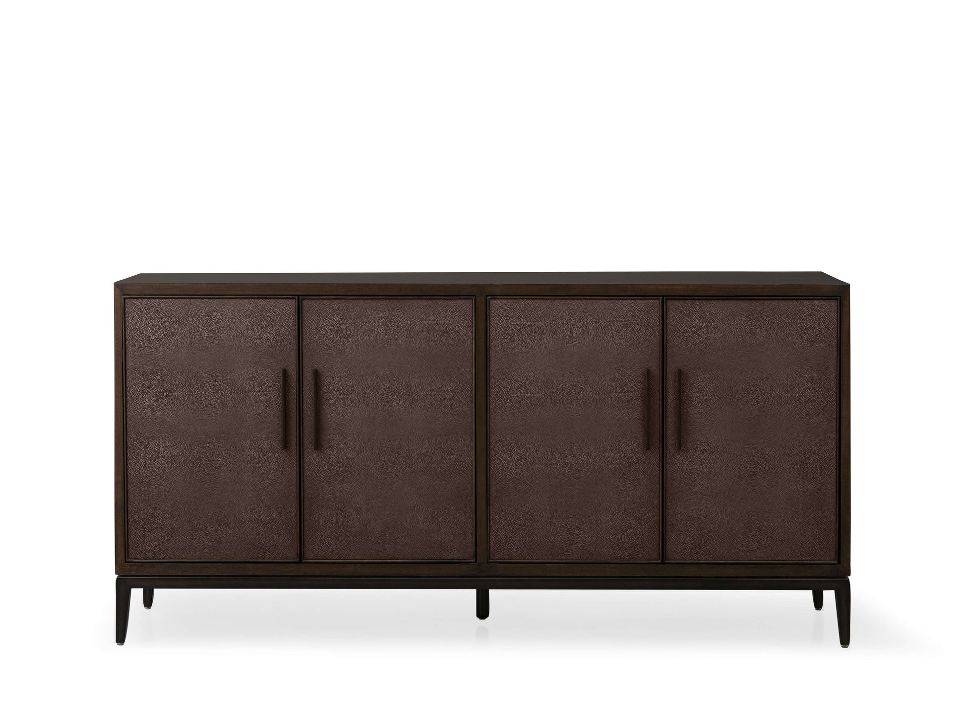 • Reconstituted leather insets are dyed and artfully embossed with textural shagreen detailing.