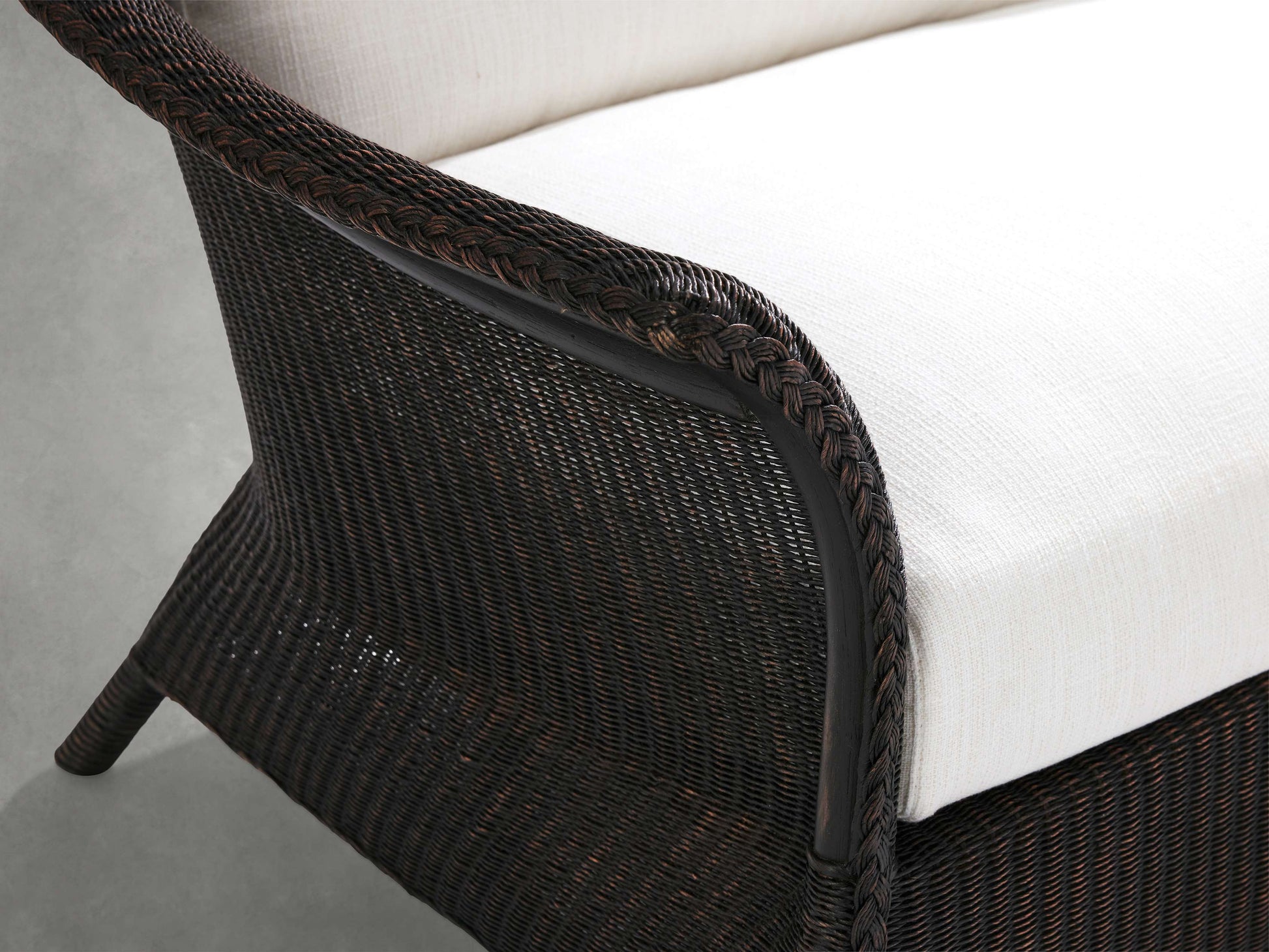 • Crafted by artisan partners in Vietnam from solid rattan pole and natural-fiber reinforced wicker loom with cushions covered in our InsideOut® Eden Snow Performance Fabric.