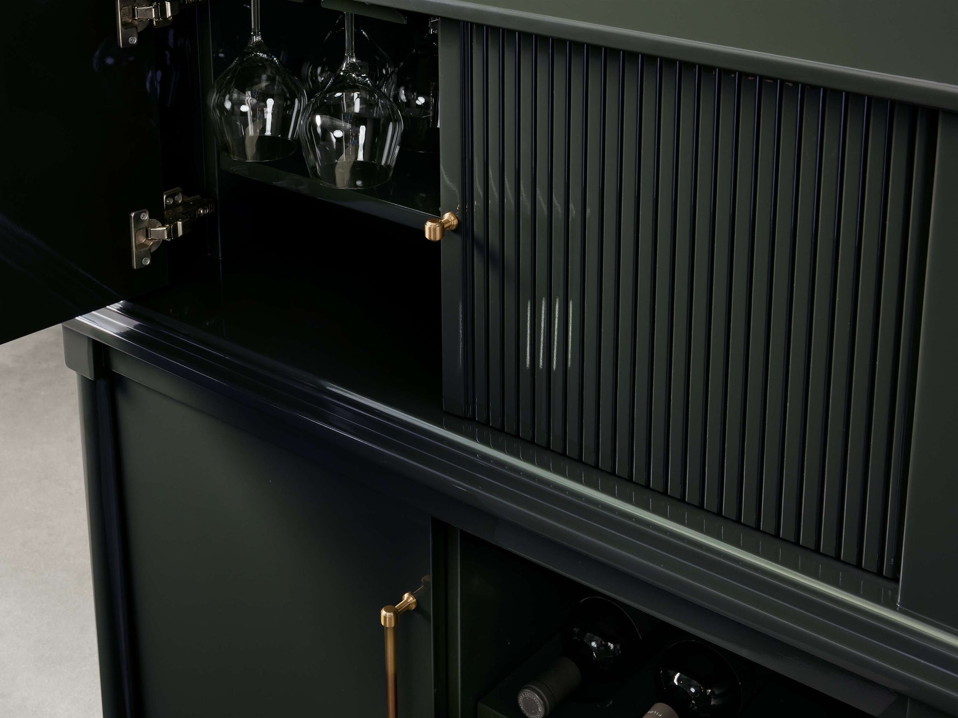 • Features storage for stemware and bottles.
