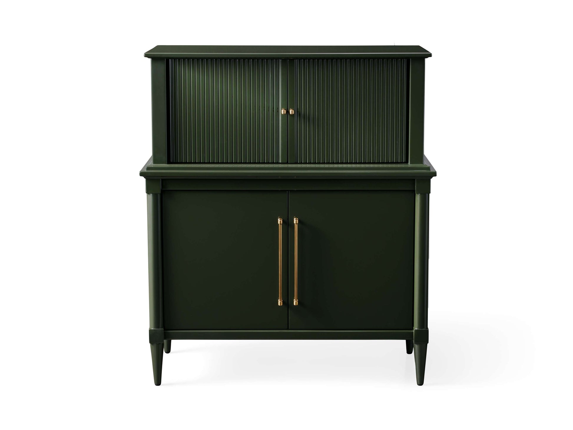 • Cabinet doors are accented by reeded detailing and brass hardware.