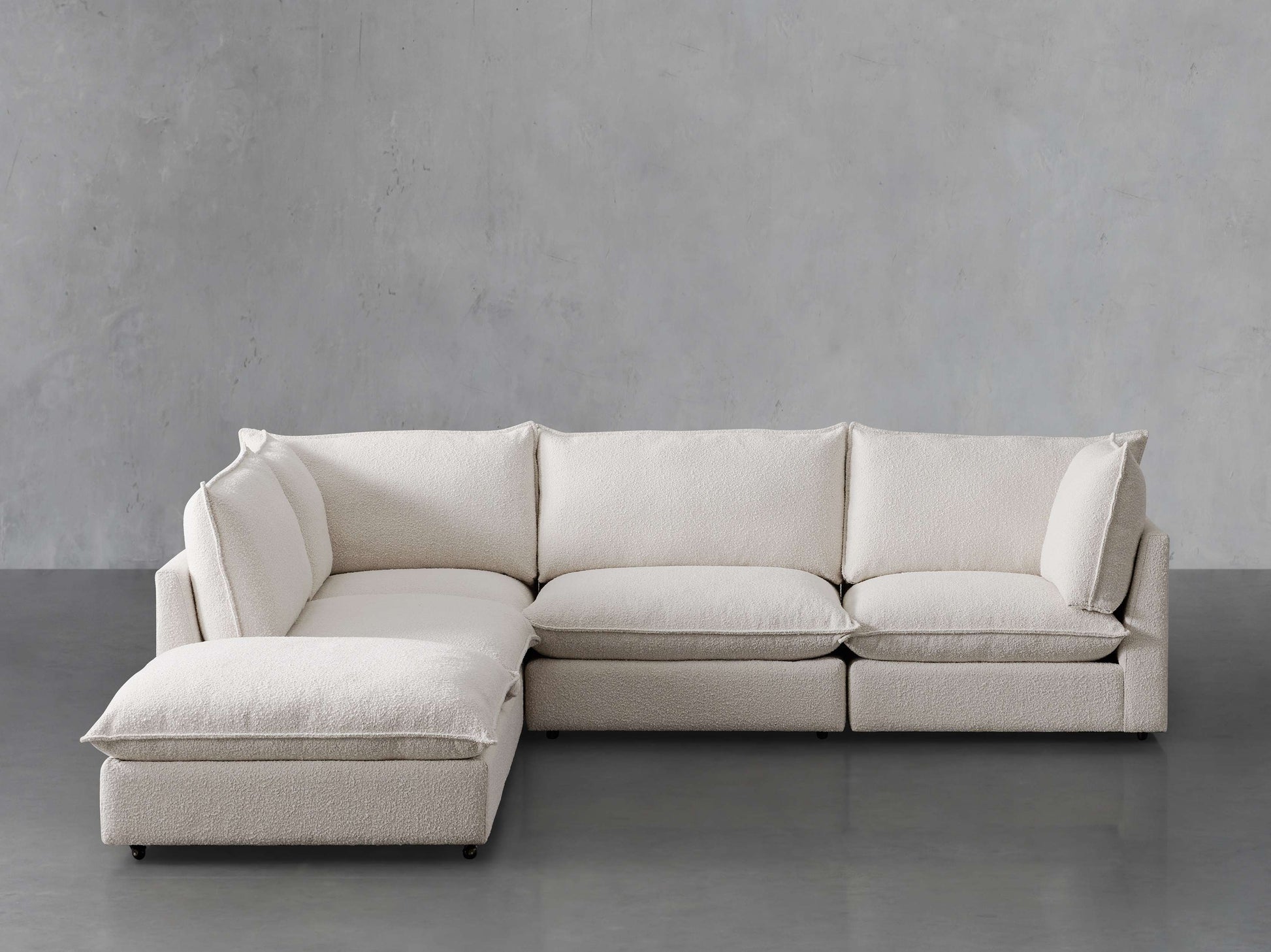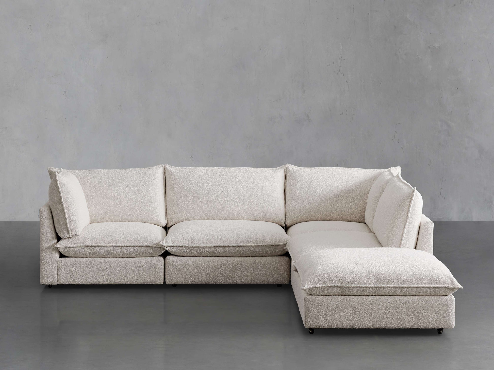 Upholstered in rich, textured boucle Performance Fabric, our Owen Collection offers deep seating and cushions you’ll sink right into. Craftsman-built by artisans, Owen’s modular designs can be arranged to fit living spaces both small and spacious, allowing you to craft the perfect arrangement for your home.