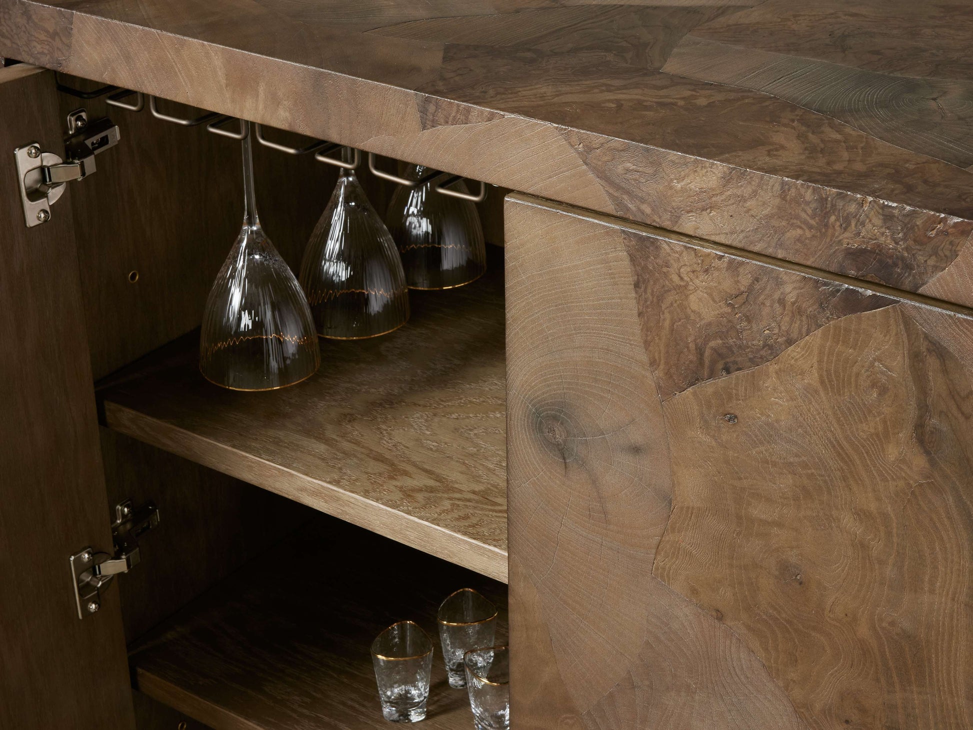 • Oyster-cut wood may display cracks and other organic features, including scorch marks, water stains, and natural graining, that will not affect the quality or performance of your piece.