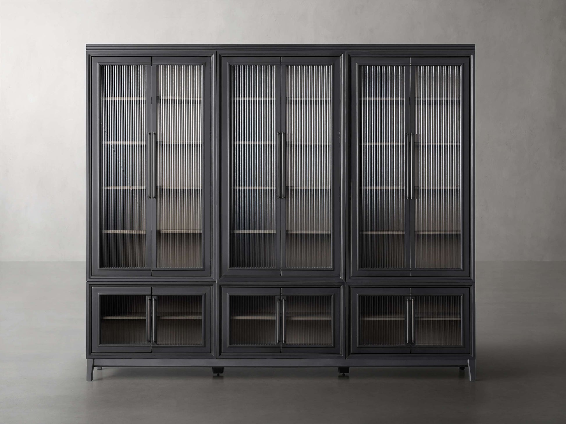 Artfully designed for both function and style, our modular Rowan Collection can be easily arranged to fit any space. Crafted by Indonesian artisans, each piece is hand-painted and hand-stained, resulting in a clean, modern aesthetic accented by iron hardware. Adorned with reeded glass detailing, Rowan is perfect for storing everyday items or for displaying your favorite curiosities.