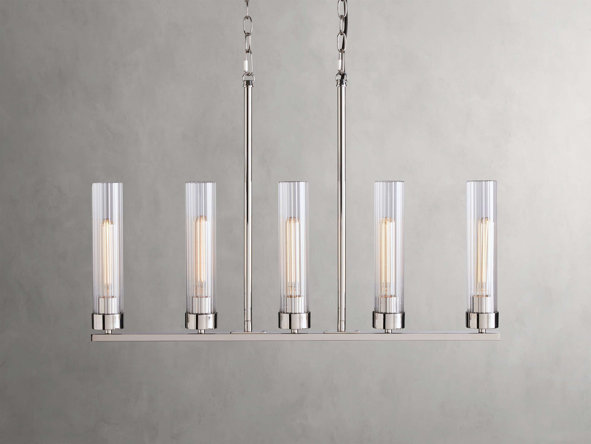 Where vintage styling meets modern aesthetics, our Andreas Lighting Collection truly shines. Featuring a striking linear design and fluted glass shades, this Andreas Chandelier features five points of illumination for a radiant, welcoming effect.Where vintage styling meets modern aesthetics, our Andreas Lighting Collection truly shines.